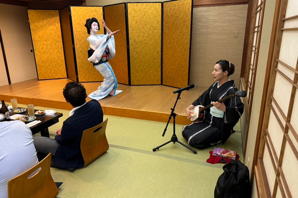 稽古は勤務時間内に組み込まれているため、仕事をしながら無理なく学べます。日本舞踊やお座敷マナーは週2回、三味線は希望者のみで、日時も相談しながら決められます。